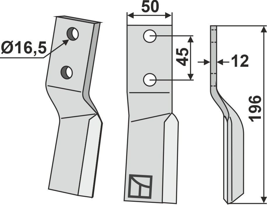 Rotary tine 196x50mm, right