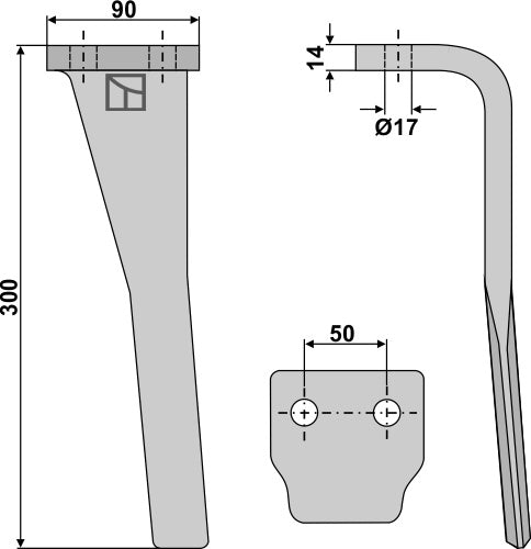 Tine for rotary harrows 300mm, left