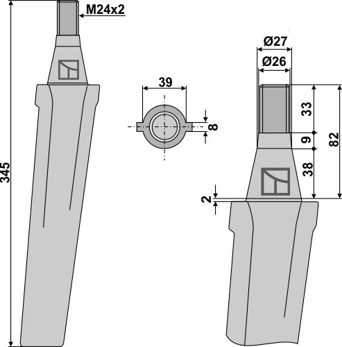 Tine for rotary harrows 345mm