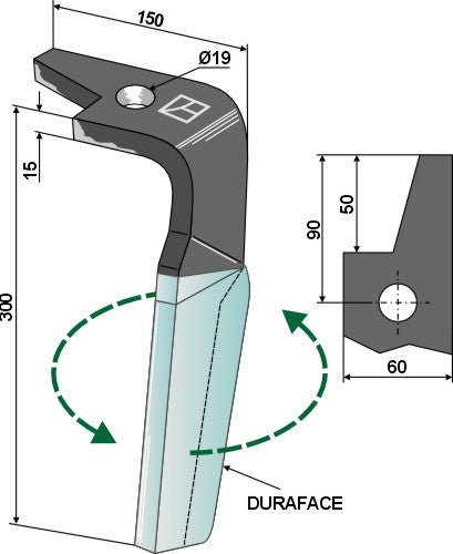 Tine for rotary harrows (DURAFACE) 300mm, left